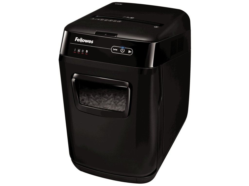 Skartování nikdy nebylo snazší. Revoluční novinka značky Fellowes, Vás o tom přesvědčí. Jen nalož, zapni a běž. Tento automatický skartovací stroj Vám umožní věnovat se prospěšnějším kancelářským činnostem, nežli je opakované postávání u běžného skartovače. Zařízení je schopno na jeden pracovní cyklus při automatickém podávání skartovat až 150 listů 70g papíru v křížovém řezu 4×38 mm. Skartovač je vybaven vstupní štěrbinou pro ruční podání až 8 listů papíru. Výkonný řezací mechanismus zpracuje při automatickém podávání sešívačkou sešité papíry (až 20 sponkou sešitých listů 70g papíru), sponky (až 20 spojených listů). Při manuálním podávání i kreditní karty.