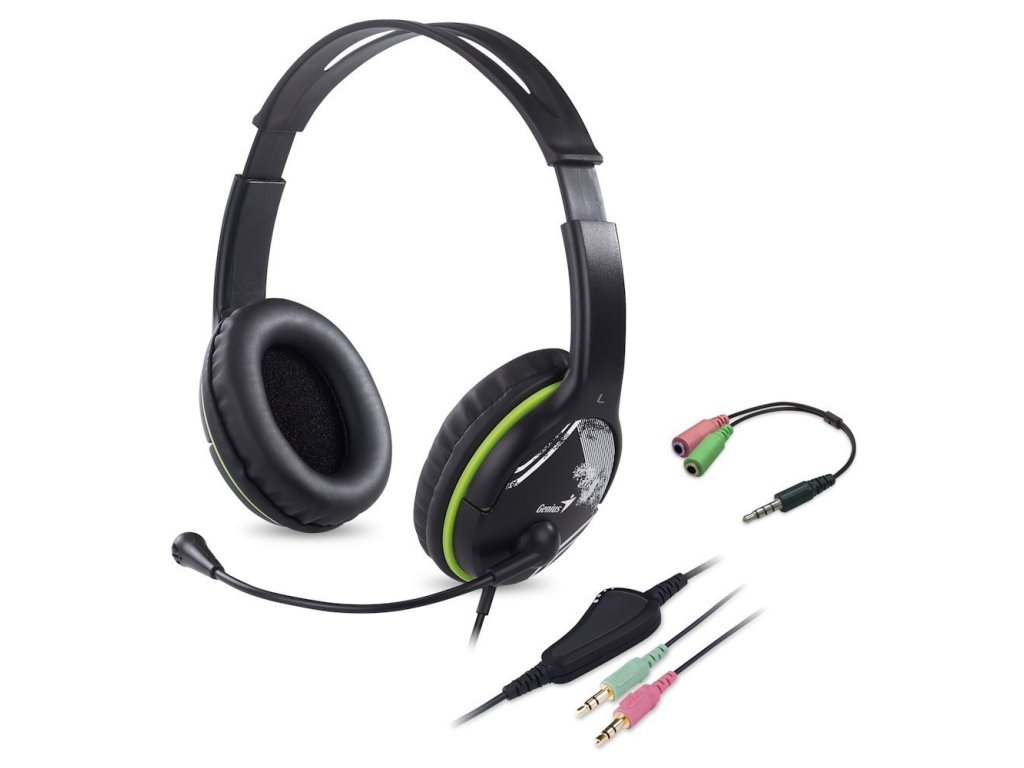 Sluchátka s mik. GENIUS HS-400A green + redukce
