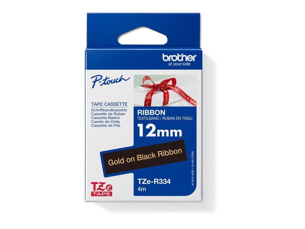 Brother TZE-R334 zlatá na černé, 12 mm, textilní páska