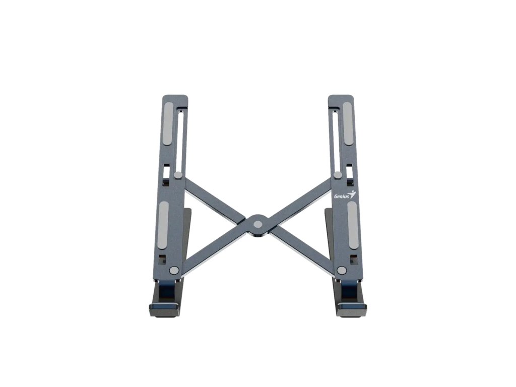 GENIUS G-Stand M250 přenosný stojan na notebook *Materiál: hliník *Vhodný pro většinu notebooků, tablet a telefonů *7 úrovní nastavitelného úhlu *Chlazení a odvod tepla *Přenosný a skládací *Protiskluzový silikon *Maximální zatížení 15 kg
