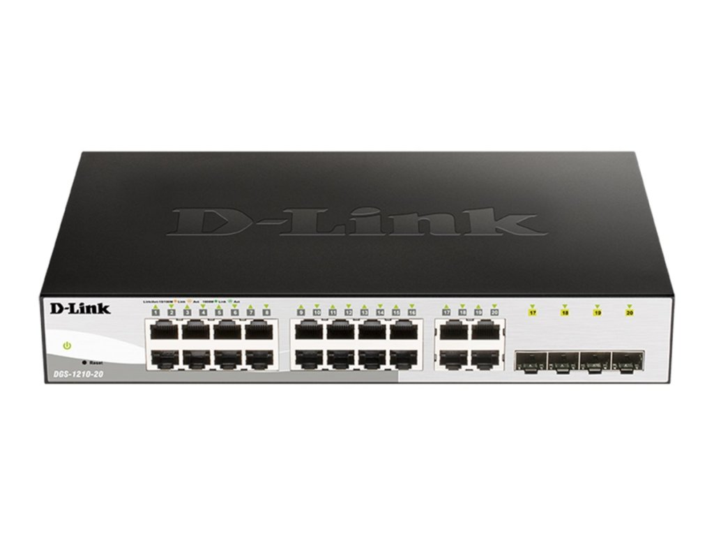 D-Link DGS-1210-20 L2/L3 Smart+ switch, 16x GbE, 4x RJ45/SFP, fanless