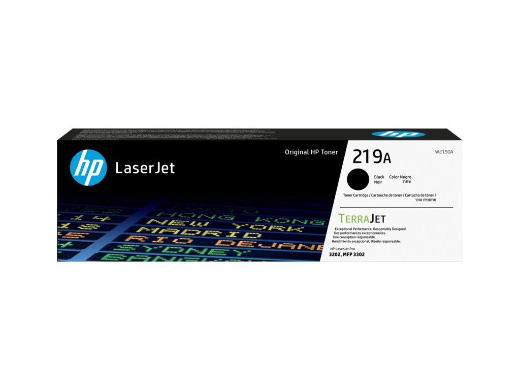 Černá originální tonerová kazeta HP 219A LaserJet (W2190A) Tonerové kazety HP TerraJet jsou navrženy pro efektivní využití toneru pro menší plýtvání a vynikající kvalitu tisku s integrovaným zabezpečením.