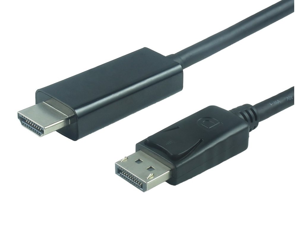 Kabel DisplayPort - HDMI funguje jednosměrně, kabel uvnitř obsahuje elektronický převodník DP -> HDMI, který dokáže konvertovat signál pouze ve směru DP -> HDMI.