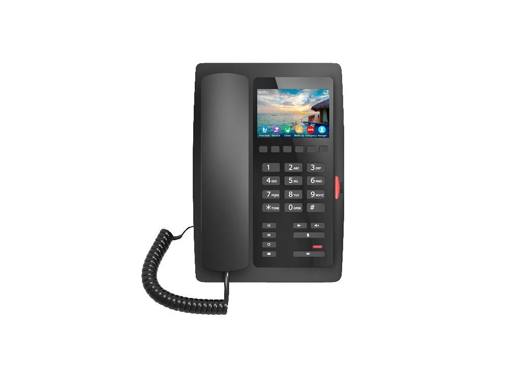 Fanvil H5W má 6 programovatelných tlačítek pro servisní hotlinky například úklid, ticketing, ústředna, jídlo a nápoje a další hotelové služby buzení, hlasová zpráva atd..
