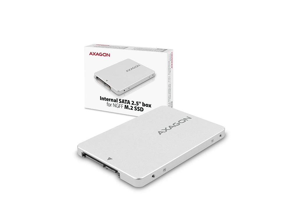 AXAGON RSS-M2SD, SATA - M.2 SATA SSD, interní 2.5" ALU box, stříbrný