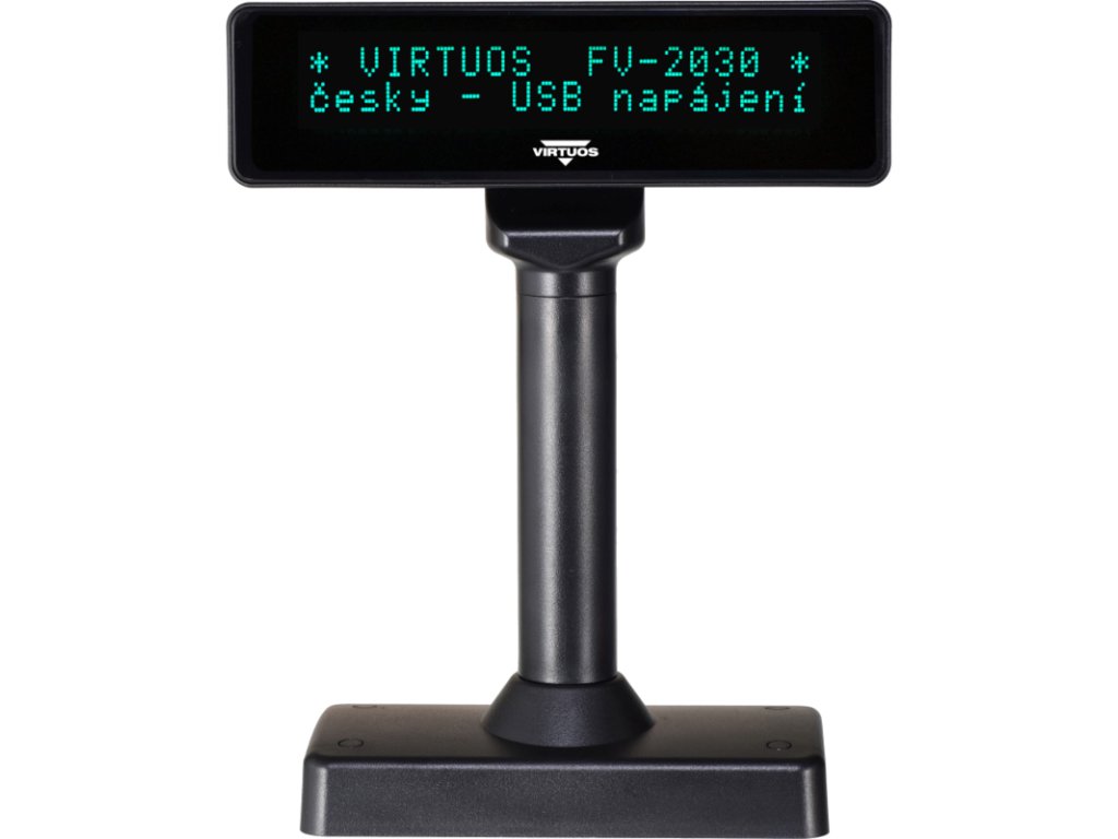 Napájen přímo portem USB bez potřeby exter. napáj. zdroje a samostatného vypínání *Na vyžádání různé druhy připojení - RS-232, Bluetooth, Wi-Fi, Ethernet *Editovatelná úvodní zpráva + možnost nastavení automatického klidového režimu *Díky nastavitelné výšce a náklonu umožňuje nasazení v různých situacích *Dvě prodlužovací trubky umožňující tři výškové konfigurace displeje *Základna displeje má po obvodu 4 otvory - možno využít k mechanickému připevnění *Čtyři konstrukční otvory na zadní části displeje pro rozšiřující držáky (VESA…) *Velká paleta řídících příkazů umožňuje nejrůznější efekty (pohyby kurzoru, vertikální a horizontální rotace, *mazání znaků, blikání, zobrazení času) *Fluorescenční zobrazovač s vysokým uživatelsky nastavitelným jasem pro snadnou čitelnost znaků *29 mezinárodních znakových sad včetně sady s českou diakritikou Latin II - CP852 *Komunikuje pomocí emulace sériového portu na USB rozhraní *Čipová sada virtuálního sériového portu  Prolific PL2303 nbsp;zaručuje kompatibilitu se všemy základnímy OS *Snadné ovládání pomocí ESC sekvencí *Příkazově kompatibilní s displeji Aedex, Epson, DSP800, Firich CD5220 *10 emulací příkazových sad včetně OPOS/JPOS ovladačů *Možnost programování vlastních znaků místo stávajících do paměti RAM
