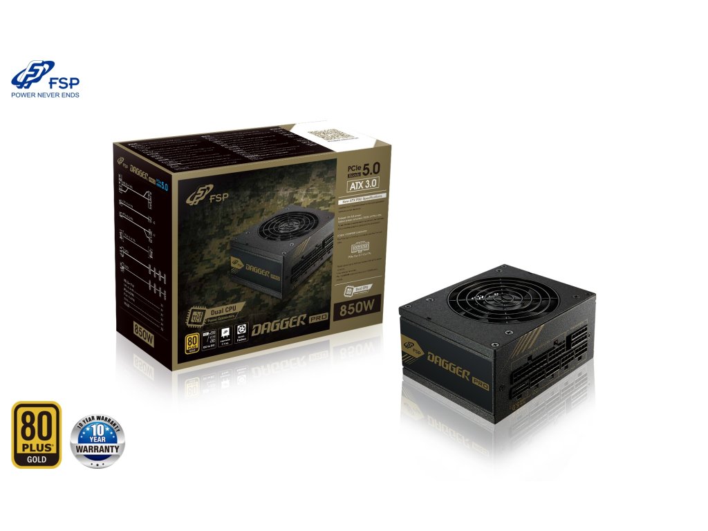 FSP DAGGER PRO ATX3.0 (PCIe5.0) 850W DAGGER PRO ATX3.0 je kompatibilní s většinou malých počítačů Mini-ITX a Micro ATX. Je ideální pro domácí počítačové sestavy, ale je skvělou alternativou pro nadšence mini-PC.