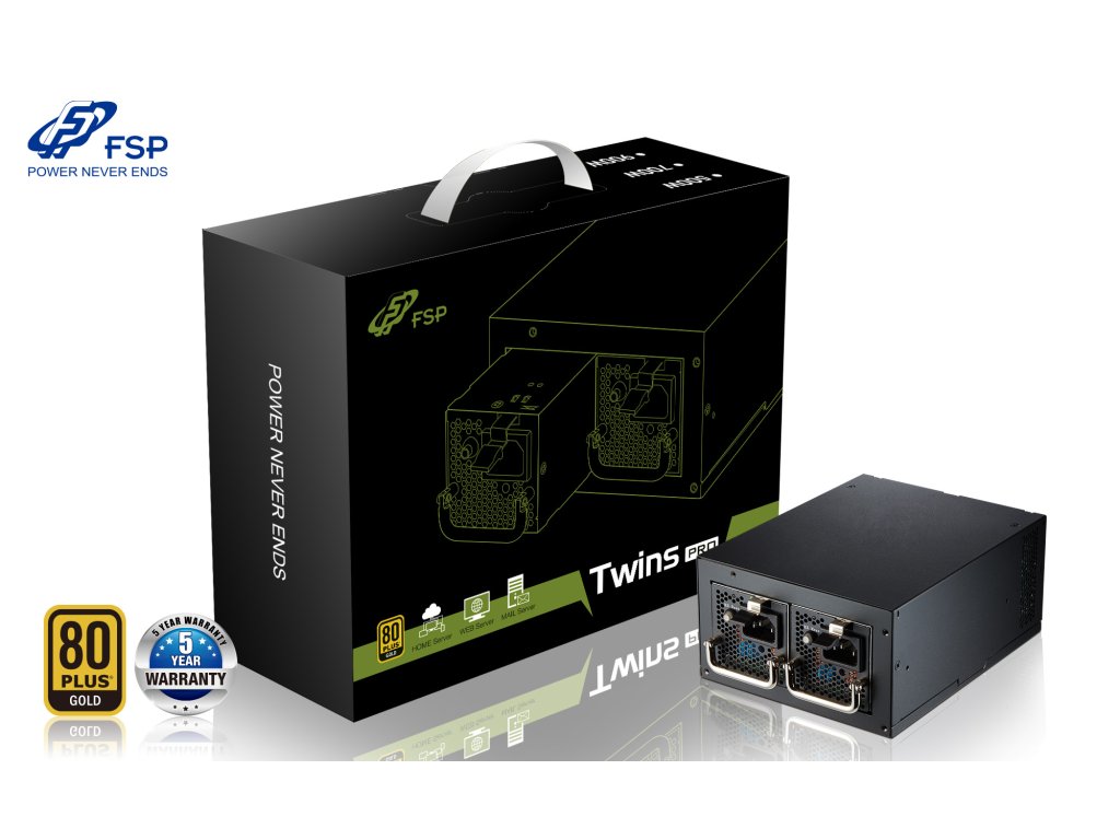 Řada Twins PRO, redundantní napájecí zdroj, je navržena pro standardní šasi ATX nebo PS2, ideální pro poštovní, webový nebo domácí server. Design modulů vyměnitelných za provozu zajišťuje stabilní napájení; když jeden selže, druhý může okamžitě převezme zatížení. Uživatelé se tak nemusí obávat žádné nepříjemné situace s vypnutím serveru / PC.